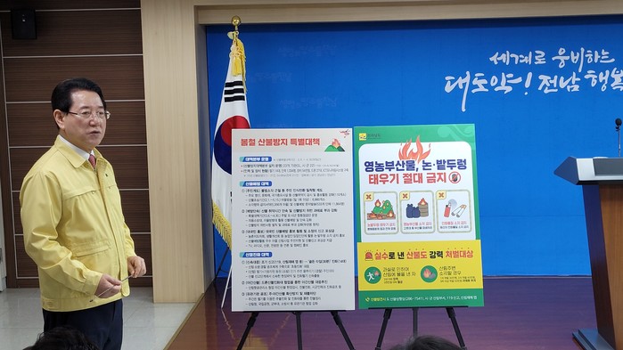 김영록 전남지사는 9일 오전 11시 산불 대응을 위한 도민 특별담화문을 발표했다.
