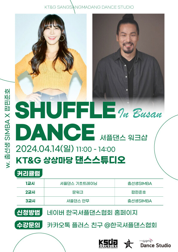 [시민일보 = 여영준 기자] KT&G 상상마당이 한국셔플댄스협회와 협업해 상상마당 부산 댄스 스튜디오에서 오는 14일 ‘원데이 댄스 클래스’를 열고 안무 특강을 진행한다.