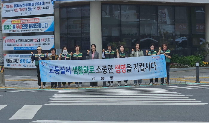 진주시 상봉동 여성민방위기동대(대장 이정희)는 5월 15일 진주여고 사거리에서 교통사고 다발지역에 대한 안전점검 및 교통안전 캠페인을 실시했다.