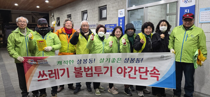 최은영 상봉동장은 “추운 날씨에도 깨끗한 상봉동을 만들고자 야간 단속 및 환경정비 활동을 마다하지 않고 도와주시는 시민수사대원들의 노고에 감사드린다”며 “행정에서도 지속적인 계도와 단속활동을 통해 올바른 쓰레기 배출 문화가 정착될 수 있도록 최선을 다하겠다”고 말했다.