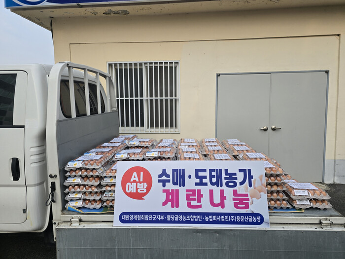 AI 발생 위험 요인 사전 차단을 위해 자발적으로 참여한 관내 소규모 가금 농가에 고마움을 전하고자 대한양계협회 합천군지부(지부장 류준희), 뿔당골영농조합법인(대표 하점길), 농업회사법인(주)용문산골농장(대표 이민희)에서 설 앞인 23일에 계란 250판을 기부하였다.