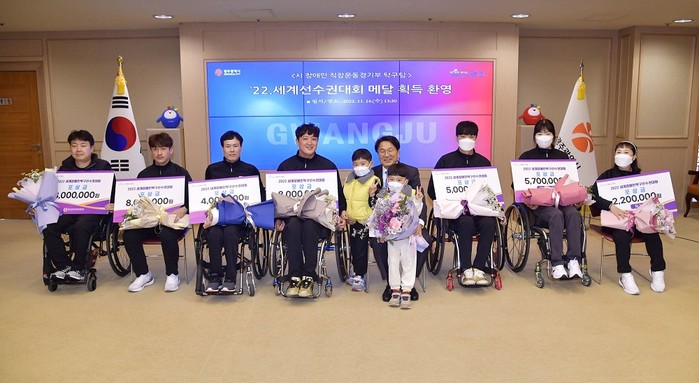 [광주=정찬남 기자] 강기정 광주광역시장은 16일 오후 시청에서 ‘2022 세계장애인탁구선수권대회’에서 값진 성적을 거둔 광주선수단을 초청해 환영했다.