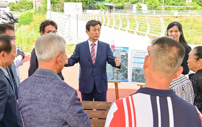 조규일 진주시장은 5일 명석면『명석 나불마을 위험도로 개선공사』사업지를 방문하여 관계자들과 함께 현장을 점검했다.