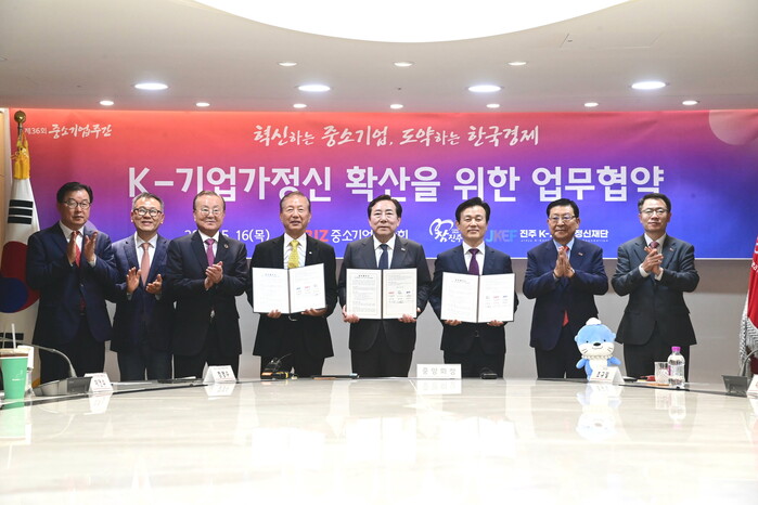 진주시는 16일 서울 영등포구 중소기업중앙회 사무실에서 진주 K-기업가정신 확산 MOU를 체결했다. 이번 협약은 K-기업가정신의 세계적 확산과 중소기업의 경제적 지위 향상을 목적으로 이루어졌다.