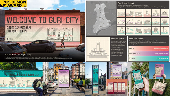 이번에 수상한 ‘구리시 도시브랜드 자산 그래픽 디자인 가이드’는 자연과 문화를 품은 구리시의 정체성과 매력을 전달하기 위해 ‘낯선 매력이 있는 도시’라는 관점에서 구리시의 18개 상징 요소를 시각화했다. 이를 통해 도시의 가치를 이야기하는 그래픽 자산으로 활용할 수 있도록 개발됐다.