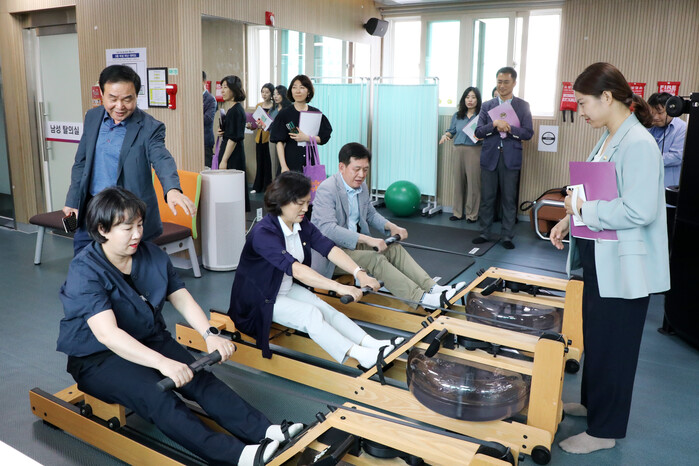 다음으로 목욕탕과 건강증진실을 갖춘 어르신헬스케어센터를 방문했다. 지난해 12월에 개관해 지자체가 운영하는 어르신 목욕탕 중 최저 요금으로 운영되고 있다. 위원들은 시설 및 인력 현황과 운영 방안에 대해 관계자로부터 설명을 듣고 이용자의 불편 사항은 없는지 꼼꼼히 살폈다.