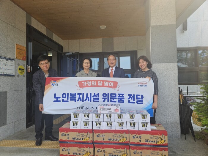 이번 위문품은 진주시민의 자발적인 기부금으로 마련된 것으로 5월 가정의 달을 맞이하여 경로효친의 의미를 되새기고 힘들게 살아온 노인들이 소외되지 않고 가족의 정을 느낄 수 있도록 관내 노인복지시설 등을 찾아 이용자와 관계자를 위로하기 위해 마련했다.
