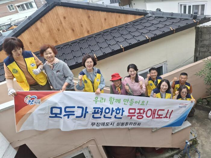 진주시 무장애도시 상봉동위원회(위원장 옥순욱)는 지난 5일 거동이 불편한 저소득 독거노인 세대에 편의시설 설치 봉사활동을 펼쳤다.