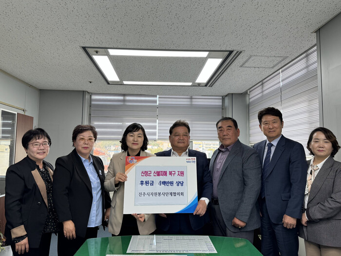 진주시자원봉사단체협의회(회장 심명환)는 지난 7일 최근 산청에서 발생한 대형산불로 인해 피해를 본 주민들을 돕고자 성금 400만 원과 칫솔 2000개를 기탁했다.