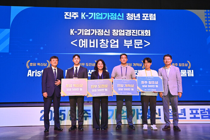 창업 부문 수상은 김종욱 진주 K-기업가정신재단 회장이 호암 혁신상과 만우 도전상, 조규일 진주시장이 연암 개척상과 효주 창조상을 수여했다.