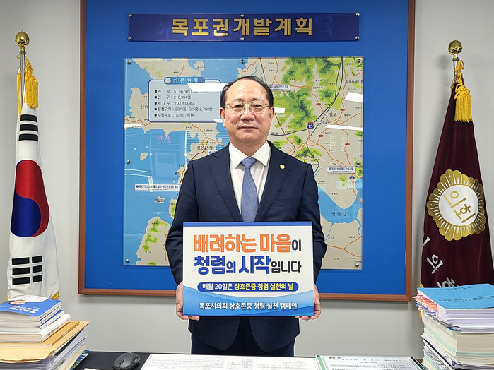 한편 목포시의회는 매월 다른 주제의 상호존중 실천과제를 홈페이지에 게재하고 SNS 릴레이 챌린지를 통해 상호존중 청렴실천 운동의 날을 진행할 예정이다.