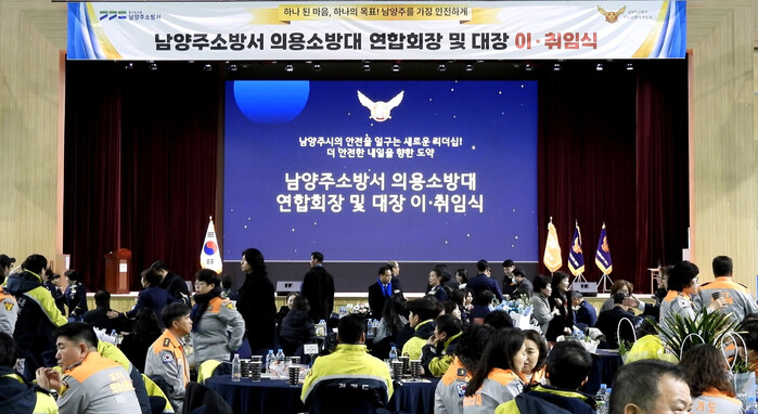 [남양주=최광대 기자] 남양주소방서 의용소방대 연합회는 27일 오후 2시 남양주체육문화센터 대강당에서 연합회장 및 대장 이·취임식을 열고 새로운 임원들의 출발을 축하했다.