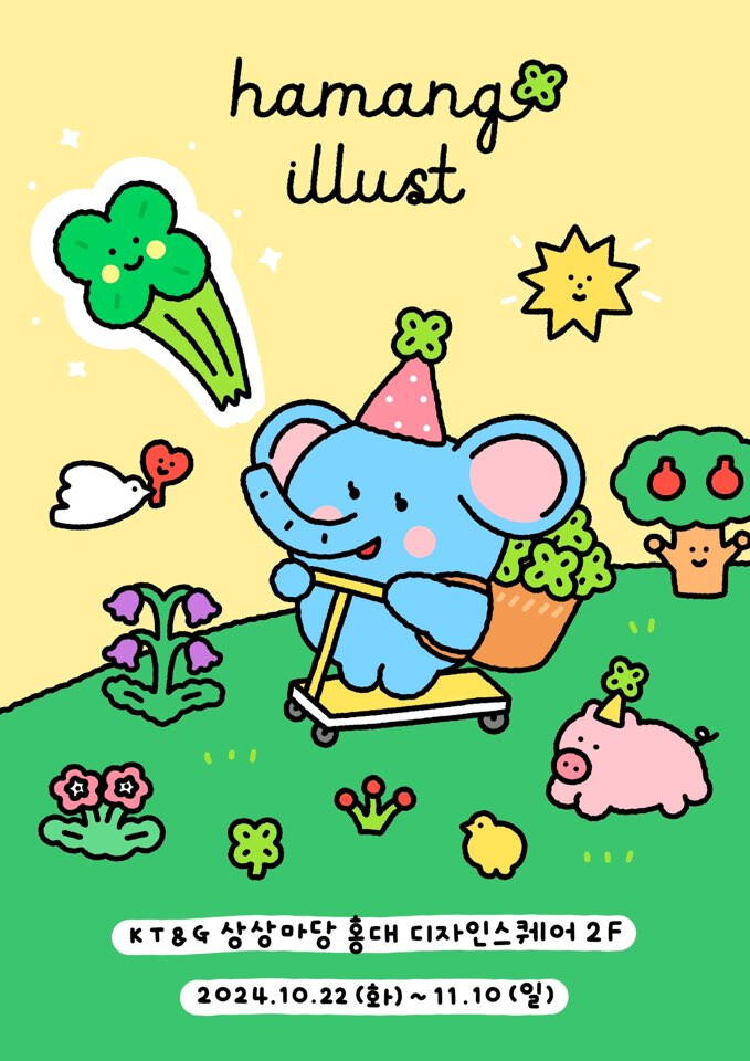 이번 기획전에서 하망 작가는 귀여운 일러스트가 담긴 엽서, 텀블러, 노트북 파우치, 키링, 달력 등 30여 종의 굿즈 제품을 선보인다. 또한, 인스타그램 스토리에 해시태그(@hamang_illust)와 함께 기획전 사진을 업로드하면 증정품을 제공하는 SNS 방문인증 이벤트도 진행한다.