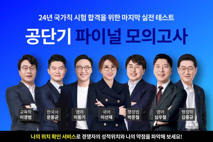 [시민일보 = 여영준 기자] 에스티유니타스의 공무원 시험 전문 브랜드 ‘공단기’는 2024년 9급 국가직 공무원 시험의 최종 점검을 도와주는 ‘파이널 모의고사’를 선보인다고 8일 밝혔다.