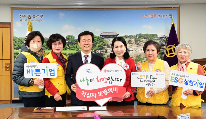 진주시는 16일 시청 기업인의 방에서 2025년도 적십자 특별회비 및 제주항공 여객기 사고 지원 성금 각 200만 원씩, 총 400만 원을 대한적십자사 경남지사(회장 박희순)에 전달했다.