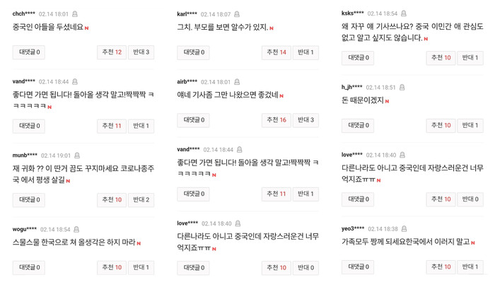 한편, 이 소식을 접한 누리꾼들은 "중국인 아들을 두셨네요", "좋다면 가면 됩니다", "중국인데 자랑스러운건 너무 억지죠", "한국 입국 절대 금지!" 등의 비난성 댓글을 쏟아내며 뜨거운 반응을 보이고 있다.