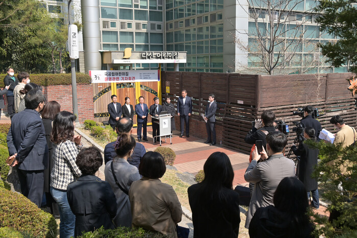 [시민일보 = 여영준 기자] 서울 중구(구청장 김길성)는 29일 다산어린이집 앞에서 기자회견을 열고 "2025년 유보통합 시행 전까지 국공립어린이집 공공 운영체제를 유지한다"고 밝혔다.