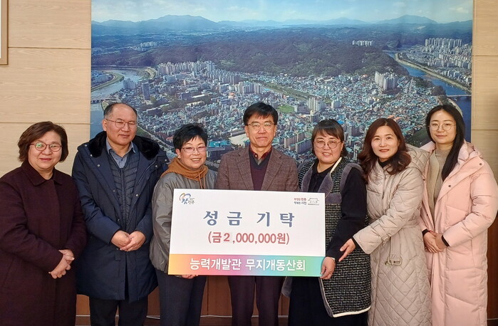 능력개발관 봉사단체 무지개동산회(회장 정민자)는 26일 재단 회의실에서 도움이 필요한 어려운 이웃에게 전달해 달라며 진주시복지재단(이사장 이성갑)에 성금 200만 원을 기부했다.