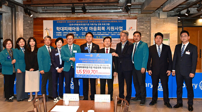 국제로타리 3590지구(총재 정웅섭)는 지난 3일 진주시아동보호전문기관에 학대 피해아동을 위한 글로벌 사업비 총 8500만 원을 전달하는 뜻깊은 행사를 가졌다.