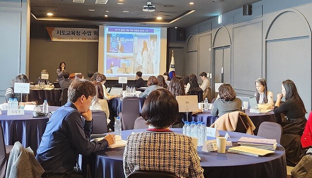 [창원=최성일 기자] 경상남도교육청(교육감 박종훈)은 15일 통영 스탠포드호텔앤리조트, 죽림초등학교에서 전국 16개 시.도교육청 수업 담당 장학사, 교육부와 한국교육과정평가원 관계자 등 60여 명이 참석한 가운데 빅데이터.인공지능(AI) 플랫폼 아이톡톡과 학생용 스마트단말기 아이북을 활용한 미래형 수업 설명회를 열었다.