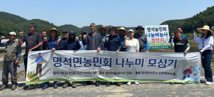 진주시 명석면 농민회(회장 이태희)는 지난 24일 명석면 왕지리 257-2번지 일대에서 ‘나눔 쌀 모내기’행사를 실시했다.