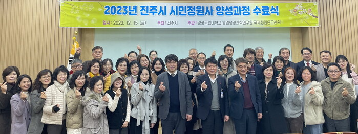 진주시는 지난 15일 경상국립대학교 칠암캠퍼스에서 정재우 경상국립대학교 칠암부총장, 시 관계자 등이 참석한 가운데 ‘제2기 시민정원사 양성교육 심화과정 수료식’을 가졌다.