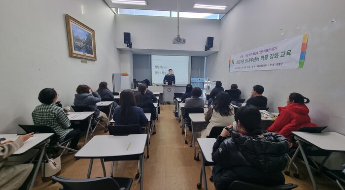 [시민일보 = 이대우 기자] 은평구(구청장 김미경)가 최근 위기가정 통합지원 전문성 강화를 위해 ‘자살 위기개입에 대한 이해와 평가’라는 주제로 ’2023년 은평구 소나무센터 역량 강화 교육을 실시했다.