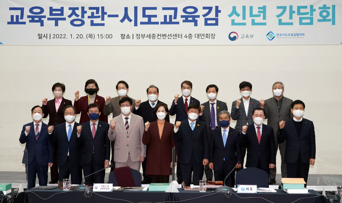 김석준 부산광역시교육감이 20일 오후 3시 세종특별자치시 정부세종켄벤션센터에서 열린 ‘제82회 전국시도교육감협의회 총회’에서 유은혜 부총리 겸 교육부장관, 다른 시도교육감들과 주요 교육현안에 대해 논의한후 기념촬영을 하고 있다.