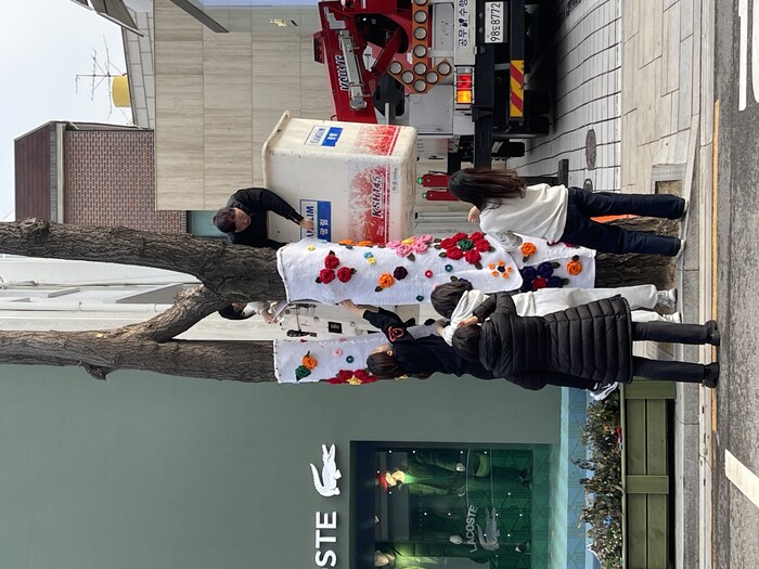 올해로 8회째를 맞은 ‘가로수길 트리아트 니팅’ 전시는 신사동 주민이 직접 뜨개질한 털실옷을 유명 명소인 가로수길 680m 구간에 있는 나무에 입히는 친환경 거리예술로, 앙상한 겨울 가로수에 다채로운 볼거리를 제공하는 신사동만의 겨울철 명물로 내년 2월까지 설치된다.