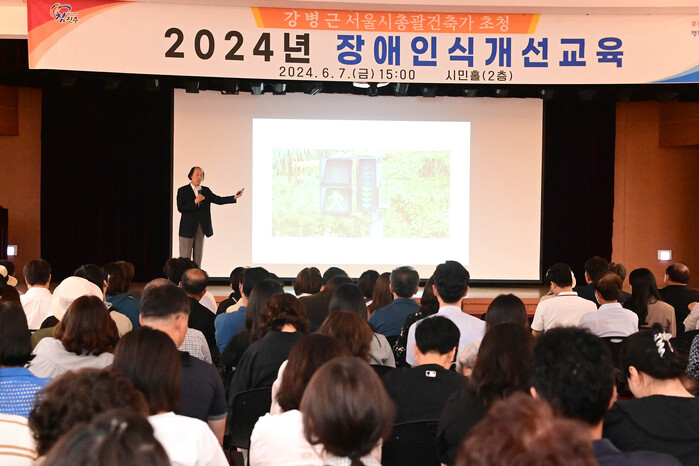 진주시는 지난 7일 시청 2층 시민홀에서 건축사, 사회복지시설·기관종사자, 건축(공학)과 학생, 무장애도시위원, 관련분야 공무원 등 250여 명이 참석한 가운데 서울시 총괄건축가 강병근 교수를 초청해 장애인식개선 교육을 실시했다.