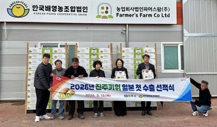 진주시는 지난 12일 문산읍 한국배영농조합법인(대표 김건수)에서 수출 관계자 8여 명이 참석한 가운데 키위 일본 수출을 위한 선적식을 개최했다고 밝혔다.