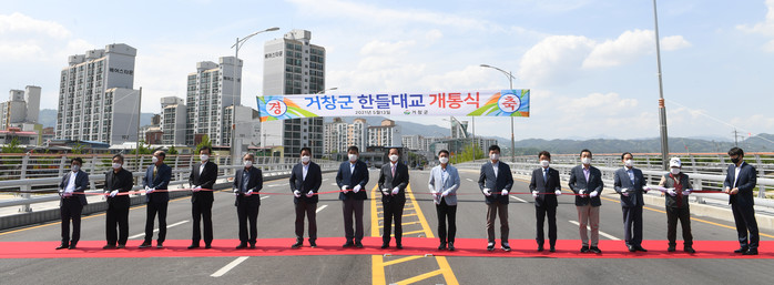 거창군은 지난해 6월 거창교 남단 회전교차로를 시작으로 지난 5월 한들대교 북단에도 회전교차로를 설치하고 거창읍의 강남ㆍ북을 연결하는 6번째 교량인 한들대교를 개통하여 인근 대단지 아파트 주변 교통난 해소와 스포츠파크의 접근성을 높였다.