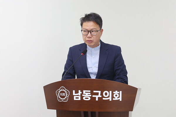 | ▲ 남동구의회 제299회 임시회에서 조례 제안설명 중인 장덕수 의원 (사진제공=인천남동구의회) |
