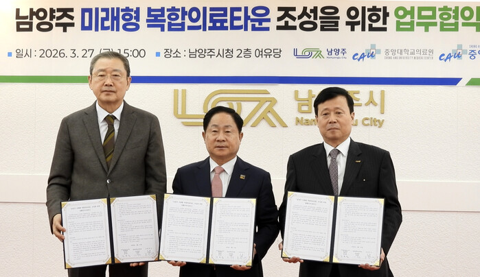 남양주시는 27일 시청 여유당에서 중앙대학교의료원, 중앙대의료원 교육협력 현대병원과 ‘남양주 미래형 복합의료타운’ 조성을 위한 업무협약(MOU)을 체결했다.