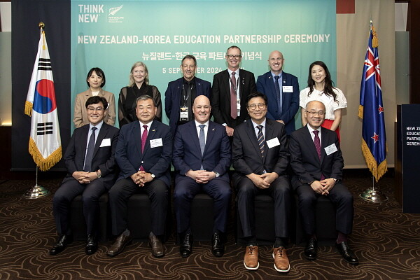 | ▲ 도성훈 인천시교육감이 9월 5일 서울 신라호텔에서 열린 한국과 뉴질랜드 교육 파트너십 구축 기념식에 참석해 크리스토퍼 럭슨 뉴질랜드 총리 및 관계자들과 기념촬영을 하고 있다. (사진제공=인천시교육청) |