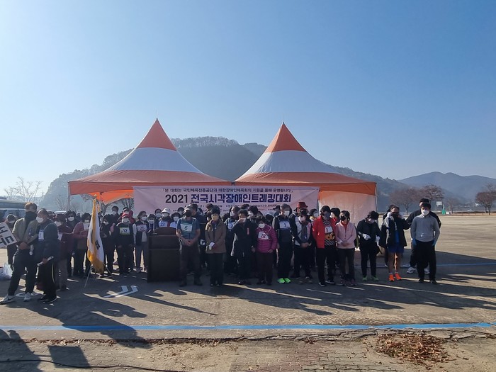 이번 대회는 60세 이하 팀은 15km, 61세 이상 팀은 11km를 선수와 가이드가 한 조가 돼 합천 군민체육공원을 출발해 율곡 자전거 교를 반환점으로 다시 합천 군민체육공원으로 오는 트레킹 코스로 진행됐다.