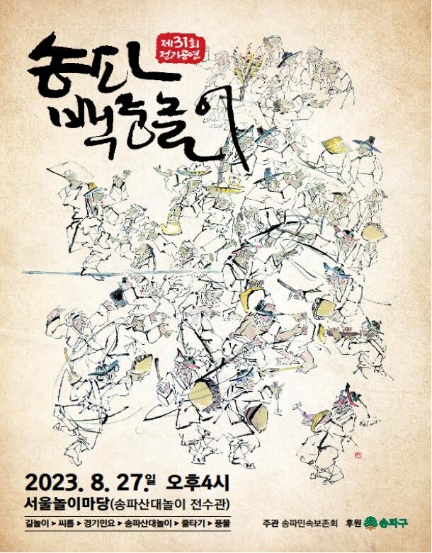 한편, 이번 공연을 주최하는 (사)송파민속보존회는 국가무형문화재 제49호로 지정된 ‘송파산대놀이’와 서울특별시 무형문화재 제3호 ‘송파다리밟기’를 보유한 단체이다. 특히 ‘송파산대놀이’는 지난 2022년 유네스코 인류무형유산에 등재되어 그 가치를 인정받은 바 있다.