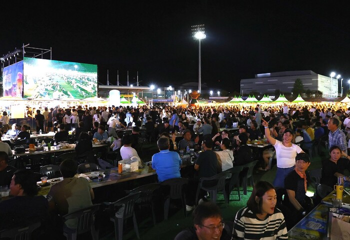 [강진=정찬남 기자] 지난 30일 “제2회 강진하맥축제”가 열린 강진군 종합운동장을 찾은 관광객들이 맥주를 마시며 공연을 만끽하고 있다.
