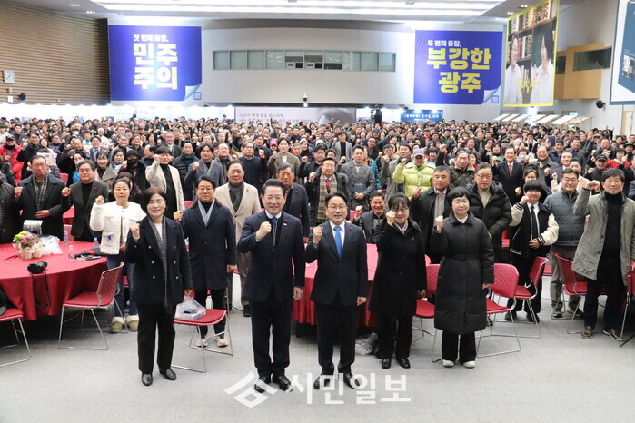 이날 행사에는 강 시장이 그간 보여준 시정운영과 정치적 행보를 지지하는 시민 1만여 명이 자리를 함께했다. 광주·전남 행정통합을 공동 선언한 김영록 전남도지사도 행사장을 찾아 축하했다.