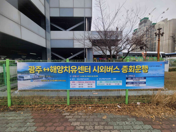 요금은 기존과 동일하며 광주(유스퀘어)↔완도해양치유센터 18,900원, 광주 송정역↔완도해양치유센터 17,400원, 해남역↔완도해양치유센터 9,400원이다.