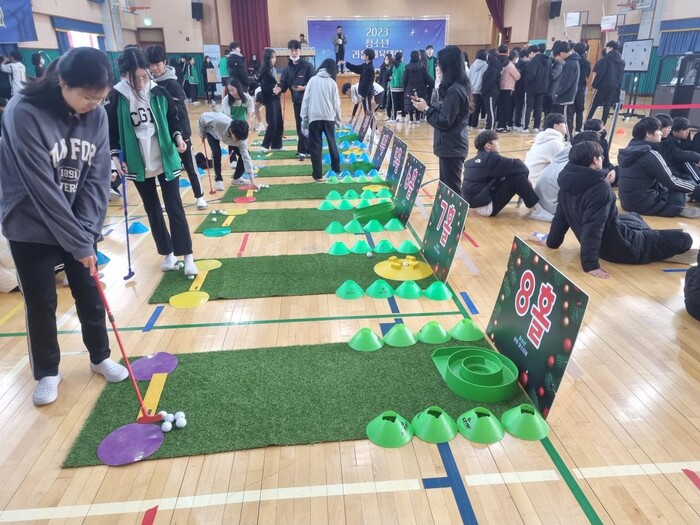‘청소년 라온 찾아가는 체육대회’는 공개모집으로 선정된 신도중학교 총 410여 명이 참가했다. 레이저사격, 골프, 서전트 점프 3개 종목과 이벤트 경기로 제기차기 등의 다채로운 경기에 참여해 반별 단합과 소통하는 시간을 가졌다.