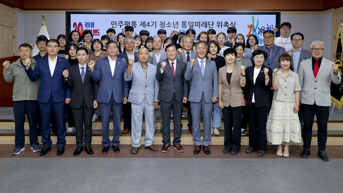 [합천=이영수 기자] 민주평화통일자문회의 합천군협의회는 13일 합천군청 3층 대회의실에서 김기태 협의회장 및 자문위원, 청소년 통일미래단 학생 등 60여명이 참석한 가운데 '제4기 청소년 통일미래단 위촉식'을 개최했다.