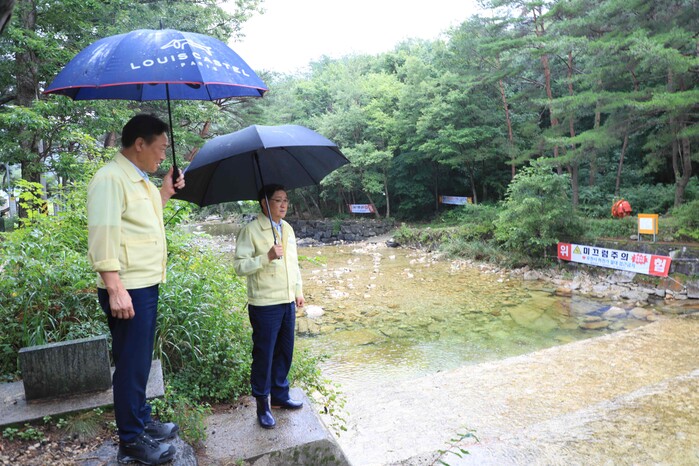 이에 진 군수는 태풍 피해를 예방하기 위하여 관내 주요 물놀이지역인 서상면 부전계곡과 안의면 용추계곡·심원정을 찾아 피서객들의 대피 상황 등을 점검했다.