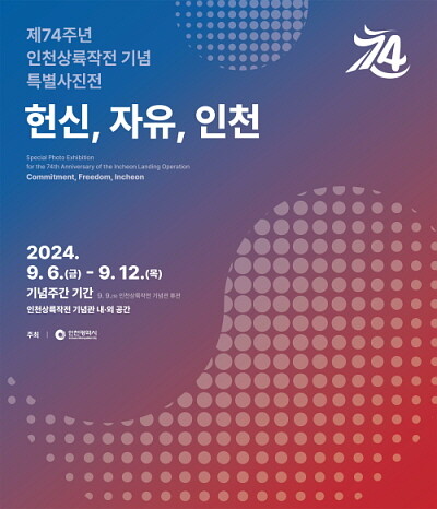 [인천=김형만 기자] 인천시는‘제74주년 인천상륙작전 기념주간’을 맞아 9월 6일부터 9월 12일까지 인천상륙작전기념관에서 ‘제74주년 인천상륙작전 기념 특별사진전(주제: 헌신, 자유, 인천)’을 개최한다.