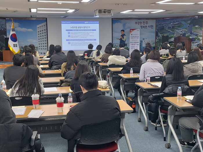 전국공무원노동조합 진주시지부(이하 공무원노조, 지부장 김영태)는 지난 9일 올해 임용된 신규 공무원 50여 명을 대상으로 4시간에 걸쳐 노동조합 교육을 실시했다.