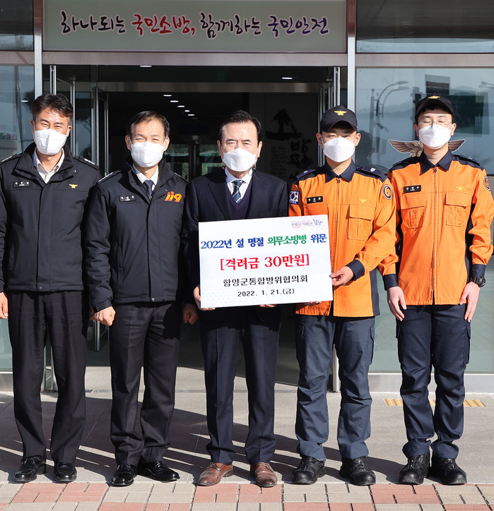 함양군 통합방위협의회 의장인 서춘수 함양군수는 21일 제8962부대 3대대와 함양소방서를 방문하여 2022년‘설’명절에도 지역 통합방위에 여념이 없는 국군 장병 및 의무소방대원들을 격려하고 위문금을 전달했다.