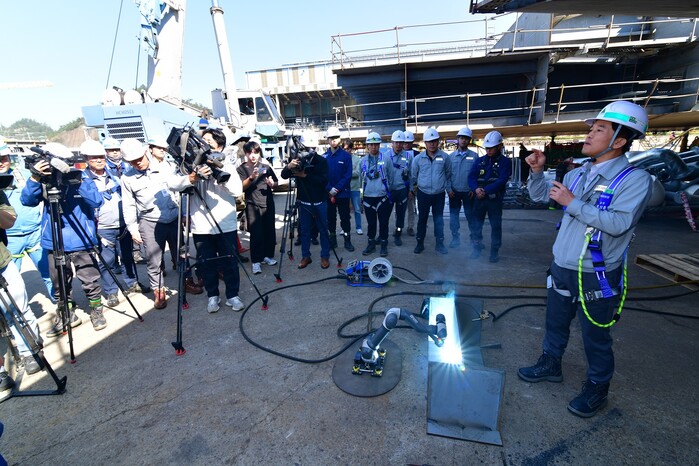 현대삼호중공업은 18일 회사 야드 내 본관 및 판넬공장 등지에서 중소조선연구원 등 공공기관과 사외협력사 관계자를 대상으로 ‘자동용접장비 현장 시연회’를 열었다.
