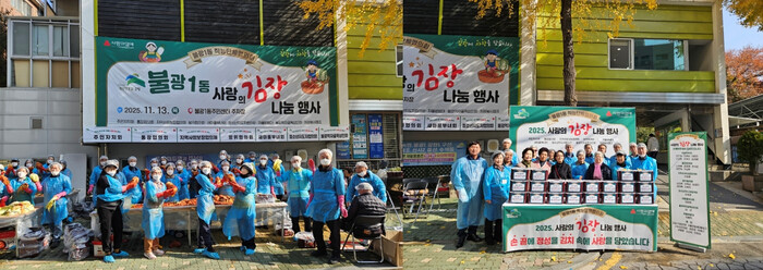 [시민일보 = 이대우 기자] 서울 은평구(구청장 김미경) 불광1동 직능단체연합회가 최근 불광1동 주민센터 앞마당에서 ‘사랑의 김장 나눔 행사’를 성황리에 개최했다.