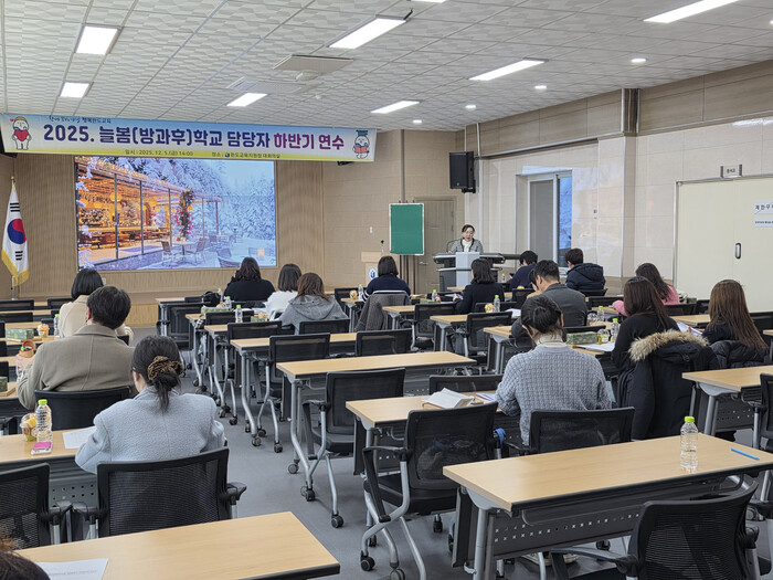이번 연수는 2025년 늘봄(방과후)학교 운영 결과 보고와 지역위탁 운영 성과 보고, 학교자체 및 지역위탁 그리고 중등 방과후학교 운영의 형태별 사례를 공유했다. 또한 현장 의견 수렴을 통해 2026년 사업의 효율적 운영 방안을 모색하고자 마련됐다.
