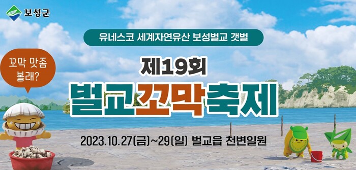 대한민국을 대표하는 벌교꼬막을 제대로 즐길 수 있는 제19회 벌교꼬막축제가 오는 10월 27일(금)부터 29일(일)까지 3일간 벌교읍 천변 일원에서 개최된다. ‘청정 갯벌과 꼬막! 그리고 문학의 만남’이라는 주제로 온 가족이 함께 즐길 수 있는 참여형 축제의 장을 마련해 관광객의 발길을 사로잡을 예정이다.